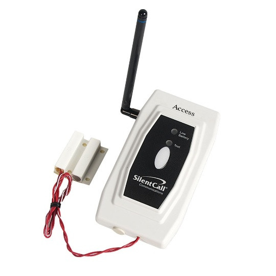 The Door/Window Access transmitter uses two magnetic bars connected to the door or window frame. Once someone opens the door or window and breaks the magnetic connection, the transmitter sends a signal to any Medallion Series receiver, which will alert you with flashing lights or vibration.