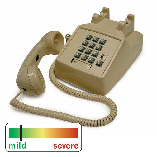 People with a low volume voice can control the loudness that their caller hears through a control switch on the handset (26dB gain). Available in beige only.